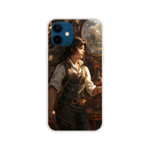 Steampunk Princess – A wonderful and intricate iPhone and Samsung Galaxy phone case featuring a beautiful girl in a steampunk world, holding a remote in her hand, and standing in front of a huge steampunk machine. Highly detailed gears and gadgets surround the artwork.